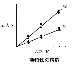 ノイズがなければ、信号水準と特性値との関係は原点を通る直線となる(線形性)。ノイズに対して線形関係が安定している(安定性)。多くの場合、直線の傾き(感度β)は大きい方が望ましい。